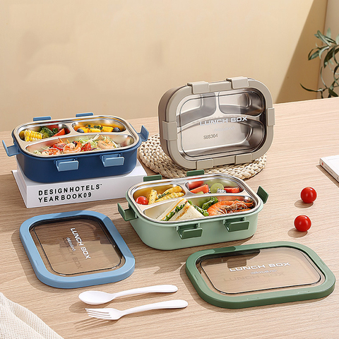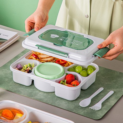 ชุดชามข้าวกล่องใส่อาหารเข้าไมโครเวฟได้มีฝาปิดสำหรับเด็กนักเรียนช่องเก็บ4/5กล่องใส่ซุปสลัดแน่น