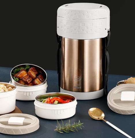 ปิ่นโตเก็บความร้อน2/3/4หลายชั้นสำหรับเด็กกล่องอาหารกลางวันทำจากสแตนเลสกันรั่วพร้อมฉนวนกันความร้อน