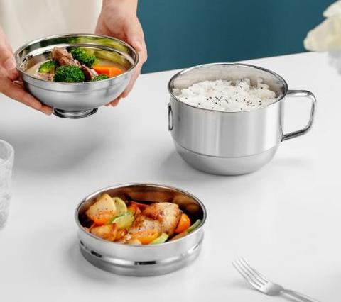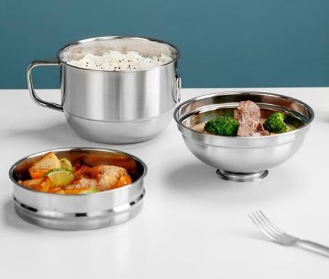 กล่องข้าวสองชั้นซ้อนได้หลายชั้น2/2ชั้นภาชนะใส่อาหารทำจากสเตนเลสมีฝาปิดกันอากาศเข้า