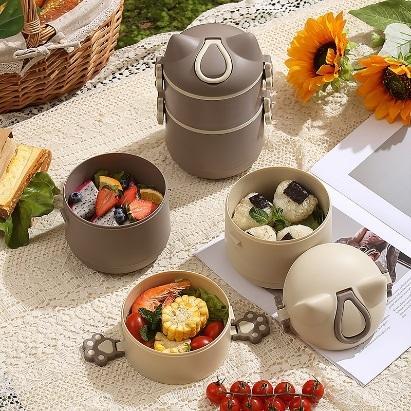 ชุดกล่องข้าวเก็บความร้อนสองชั้นสำหรับเด็กนักเรียนพร้อมที่จับสำหรับ2025ใหม่